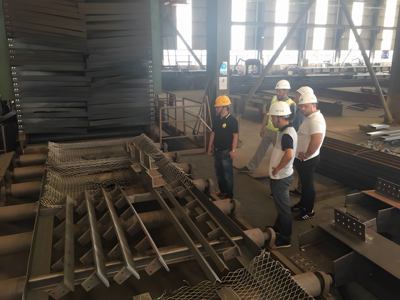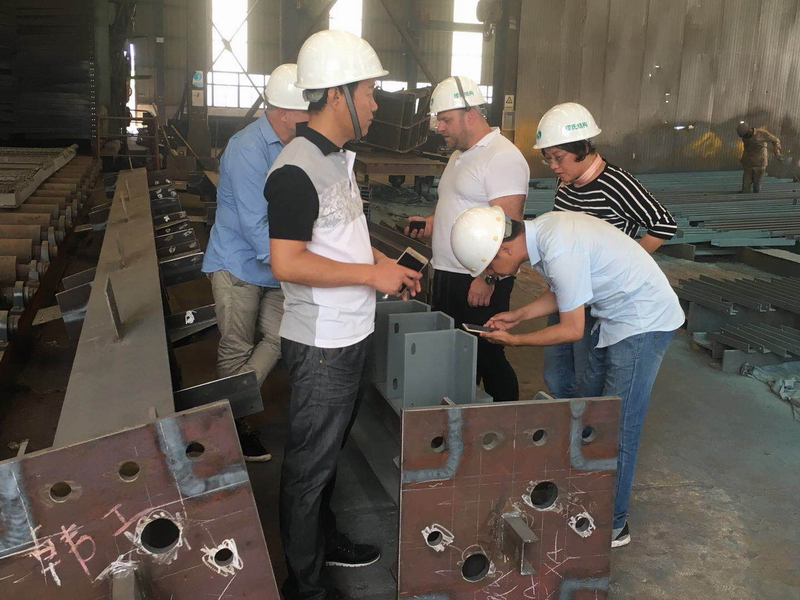 国外客人在各部门主要负责人的陪同下,参观了公司工厂生产车间、成品堆放区、现场施工区,在参观过程中,我司陪同人员给客户进行了详细的产品介绍,并对客人提出的疑问进行了专业解答。缪氏钢构的产品质量和加工精度各方面都得到了客户们的高度认可,丰富的专业知识和有素的工作能力,也为客人留下了深刻印象。