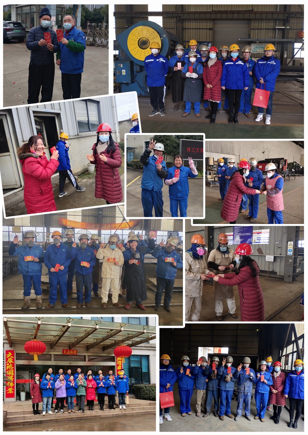 2022年正月初八,缪氏钢构董事长赵仙明带领全体管理层负责人,一同前往公司各个车间和岗位,亲自为每一位缪氏的员工送上新年的祝福和开工红包。大家手上拿着象征吉运的红包,脸上洋溢着藏不住的喜悦,纷纷力争要在新的一年里努力工作,为缪氏钢构的发展续写辉煌。