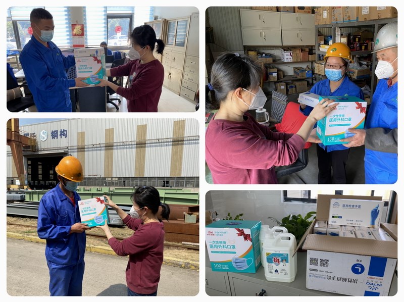 此次疫情防控工作得到缪氏钢构全体领导和职工的积极响应,公司上下和衷共济。各部门明确防控主体责任,做好防控预案和应急方案。领导亲自下车间将口罩和消毒液等物资分发到每一位员工手中。